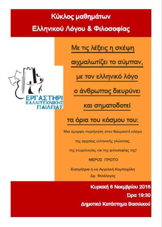ARTS LAB aka ʽErgastiri Kallitexnikis Paideiasʼ was established in 2002 in Vasiliko, the capital town of the former Municipality of Lilantion near to Chalkida the capital of Evia Island – and is run as a municipal corporation for cultural growth. Soon it became popular to students and adults as the main cultural center of the area. Besides taking the leading role in creating culture and art to the local society, the ARTS LAB has often collaborated and inspired other cultural societies and private individual art and music schools.