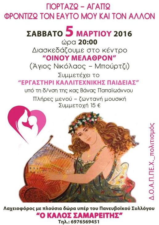 ARTS LAB aka ʽErgastiri Kallitexnikis Paideiasʼ was established in 2002 in Vasiliko, the capital town of the former Municipality of Lilantion near to Chalkida the capital of Evia Island – and is run as a municipal corporation for cultural growth. Soon it became popular to students and adults as the main cultural center of the area. Besides taking the leading role in creating culture and art to the local society, the ARTS LAB has often collaborated and inspired other cultural societies and private individual art and music schools.